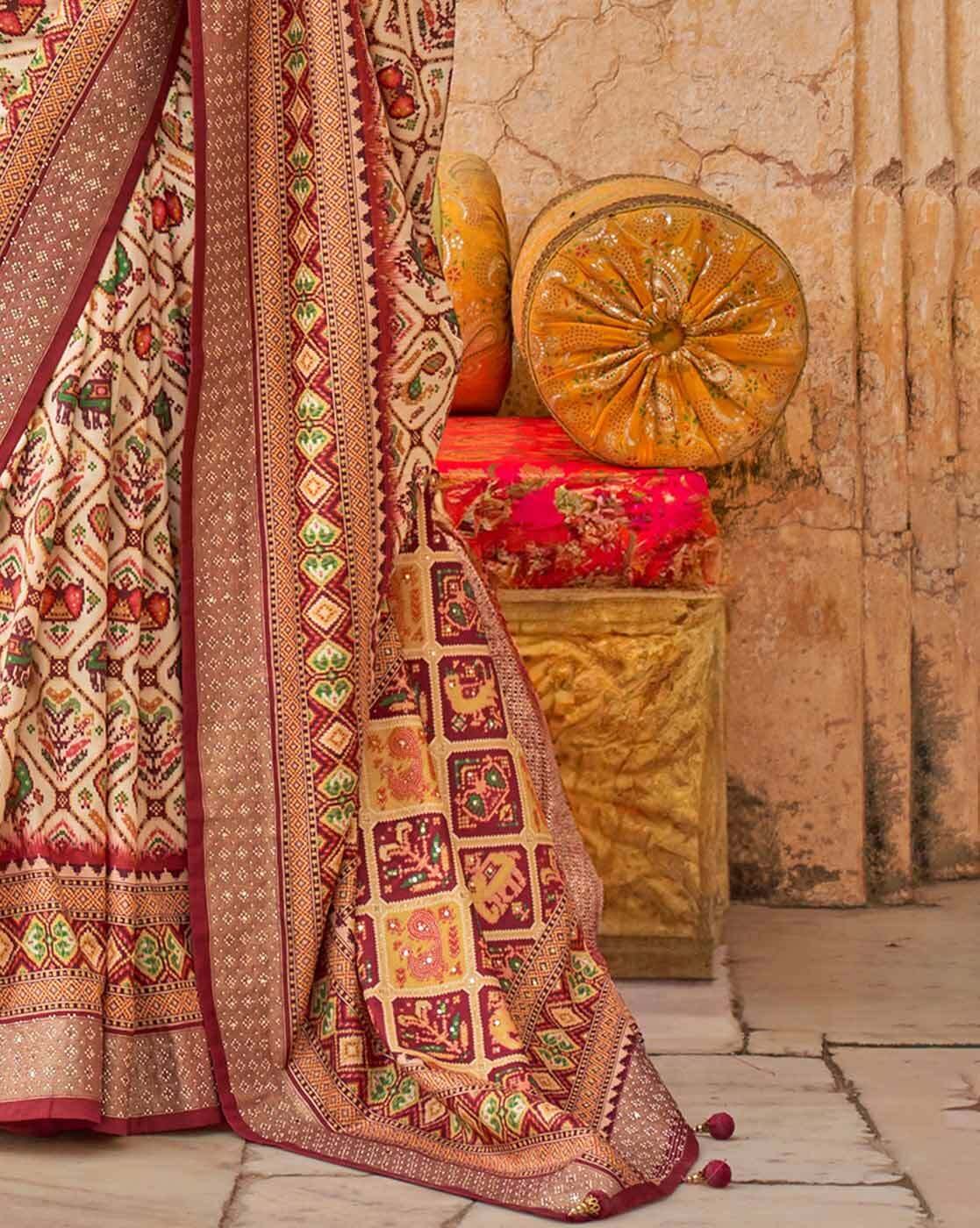 - Print & Pattern :- Ikat, Work Deatils :- Tassels and Latkans, Occasion :- Traditional/Festive, Type :- Patola